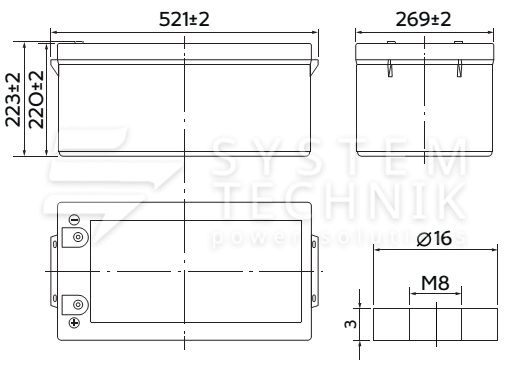 - Срок хранения без подзаряда: 6 мес. при 25°C;