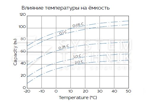 - Срок хранения без подзаряда: 6 мес. при 25°C;