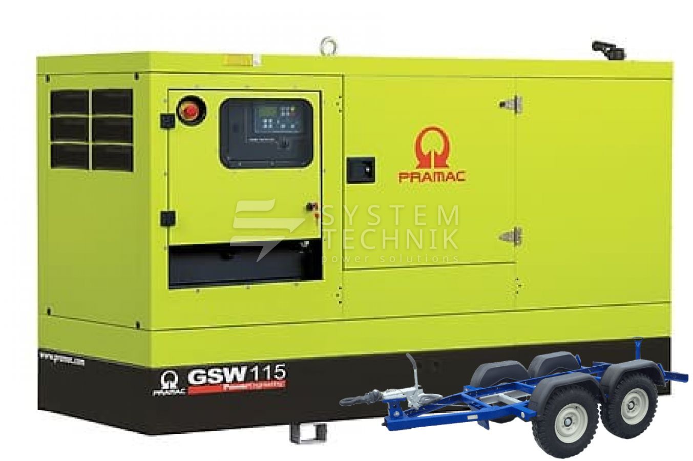 - Дизельный генератор Pramac GSW 115 P 230V 3Ф В кожухе на прицепе